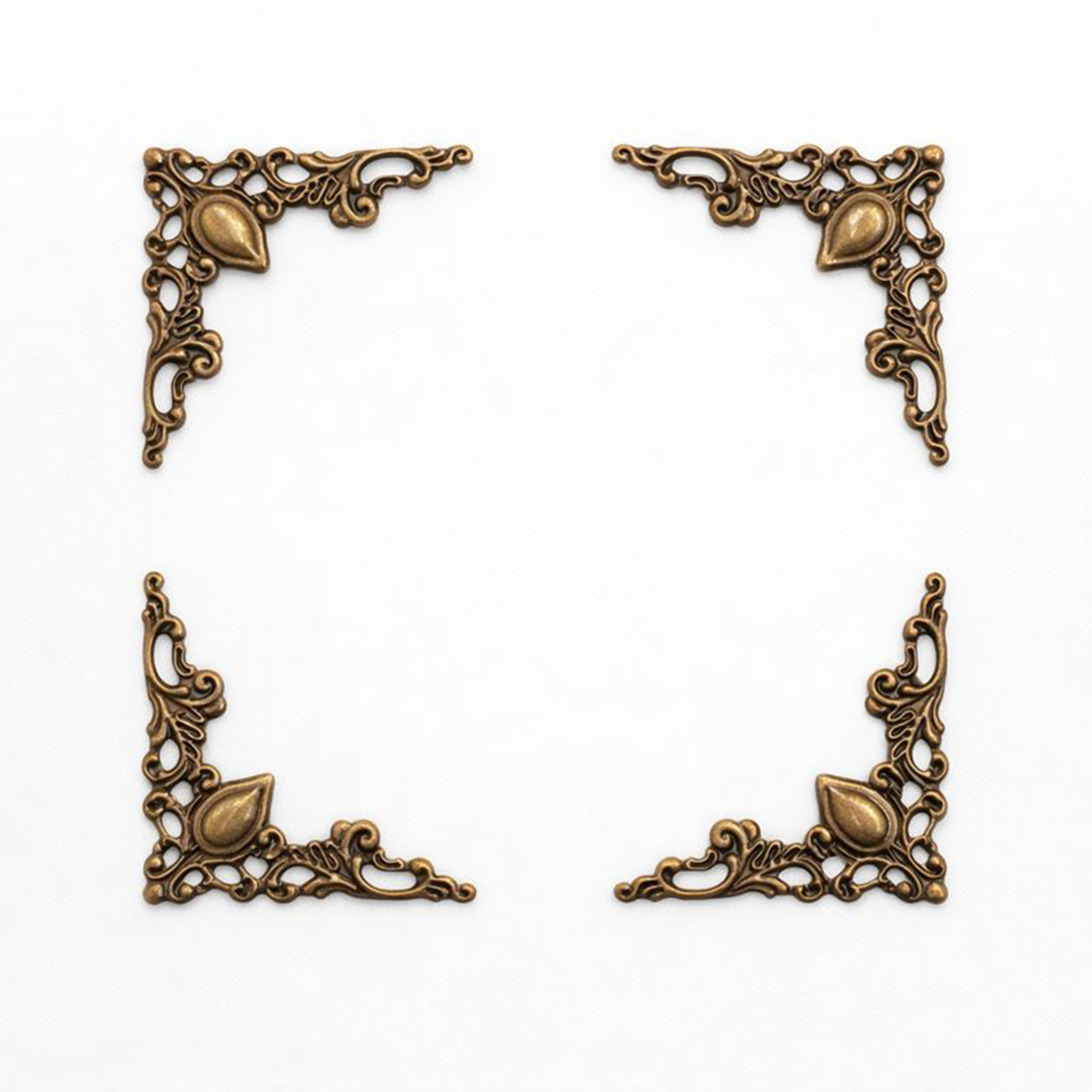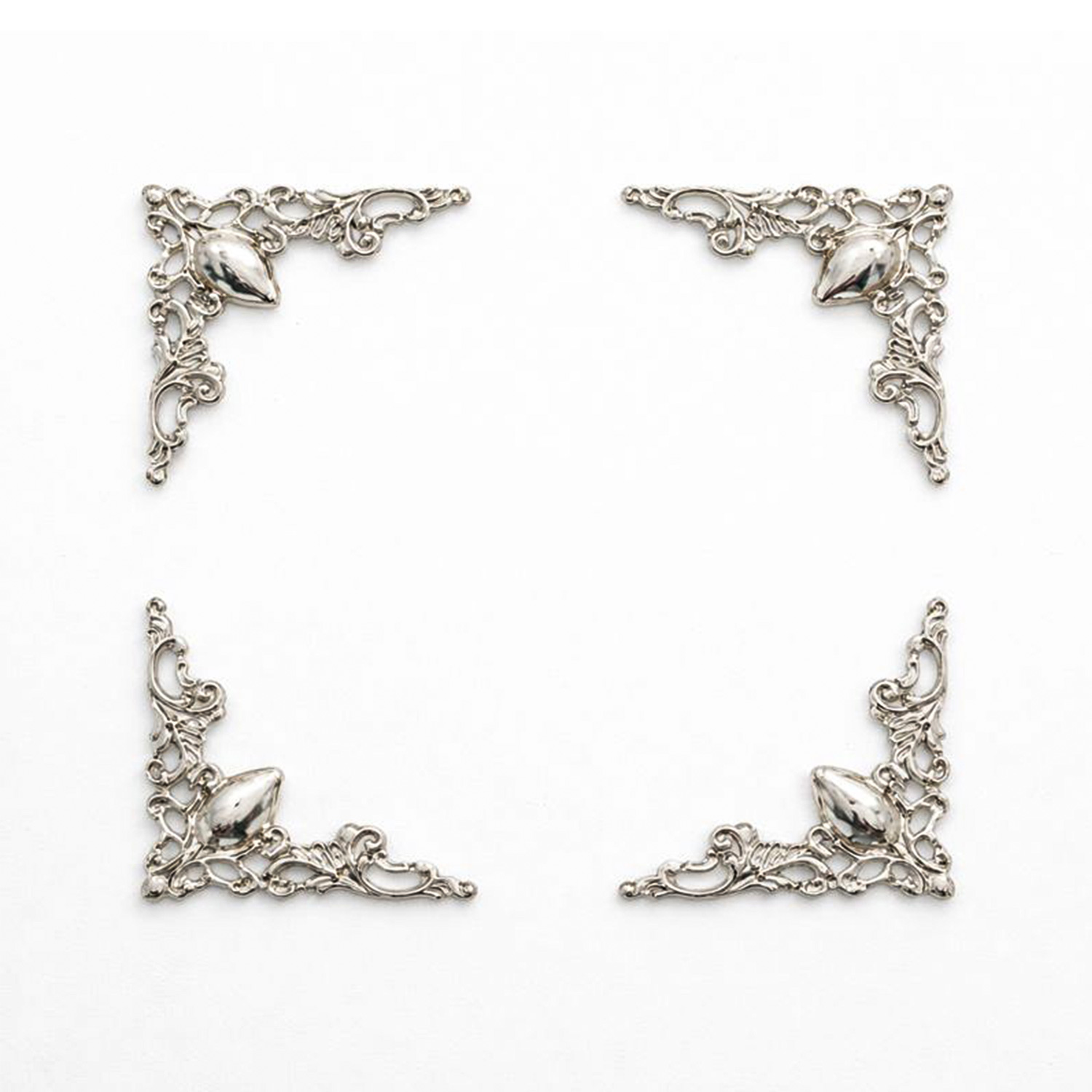 Ornament decoratiune metalic coltar decorativ, decoratiune pentru mobilier sau pentru obiecte (carți, cufere). Se montează foarte ușor cu silicon pentru sticla/metal, oferind mobilei dumneavoastră un aspect deosebit. Poate fi montat în diferite forme, fiind liber să vă aplicați propriul design. Setul cuprinde 20 bucati ornamente